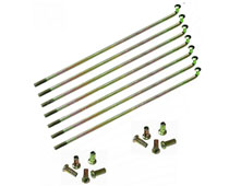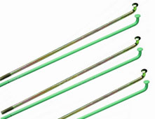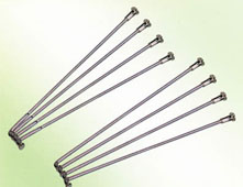 摩托車輻條,尺寸:120-230(mm),型號:C90。主要規格有 8G、9G、10G、11G、12G、13G、14G、15G長度為45mm-308mm,條母有普通型、銑槽、加長型銑槽及加長型銅條母。主要用于連接摩托車外輪和輪轂。摩托車輻條一端有個90度彎角穿過車抽盤的小孔,另一端有輻條帽穿過輪轂的輻條孔。通過調節輻條的松緊來調整摩托車車輪轉動是不是在同一個平面上。這樣,摩托車行駛會更穩。