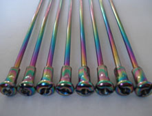 摩托車輻條的制作工藝:先選用優質輻條鋼絲(橫截面形狀:圓形截面尺寸:3.5(mm)長度:任意(m)重量:任意(kg/km)抗拉強度:10000(MPa))盤鋼形式,放在輻條機旁。把輻條鋼絲穿過輻條機,啟動輻條機,通過對輻條鋼絲的調直,切斷,彎頭,彭頭,攻絲,幾個過程,摩托車輻條的半成品就出來了,再經過淬火,鍍鉻,檢驗,涂油,包裝,摩托車輻條的成品就出來了。